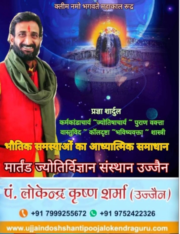 मार्तंड ज्योतिर्विज्ञान संस्थान उज्जैन कालसर्प, मंगल दोष, कुंभ विवाह, अर्क विवाह, ग्रहण व चांडाल दोष, महामृत्युंजय आदि अनुष्ठान